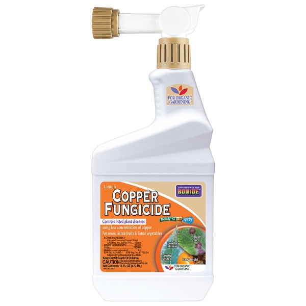 CONTROLS PLANT DISEASES - Liquid Copper Fungicide helps control powdery mildew, downy mildew, black spot, peach leaf curl, rust, and many other listed diseases.