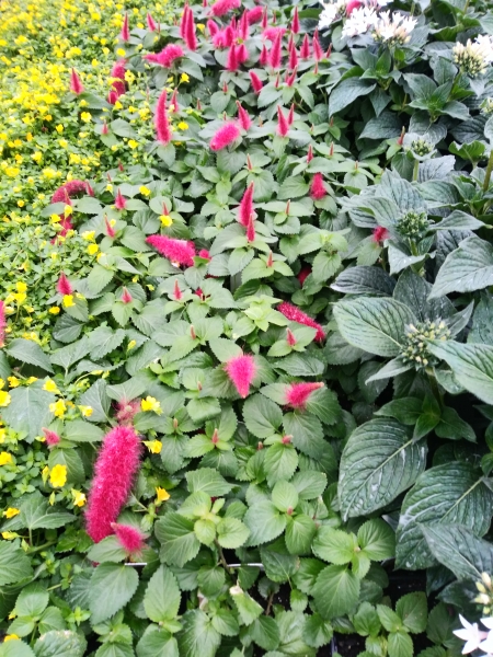 A tropical plant that is grown as an annual or houseplant in our climate. Stands out for its unique, long, furry, red, draping flowers. Nice in a hanging basket or another location where it can droop and trail.